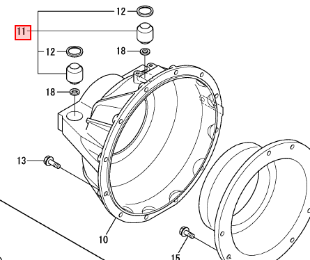 Bakre motorfester for hekkaggregat.