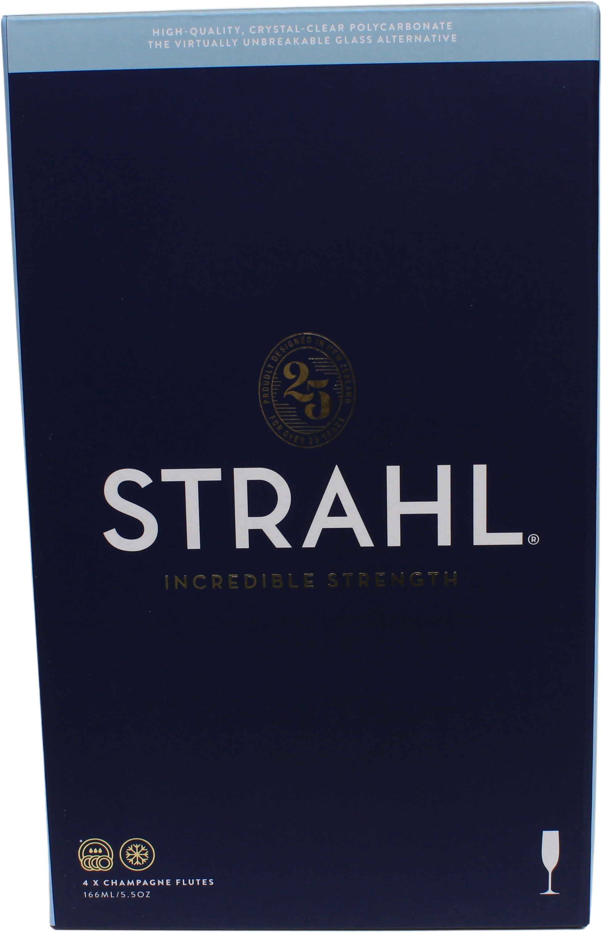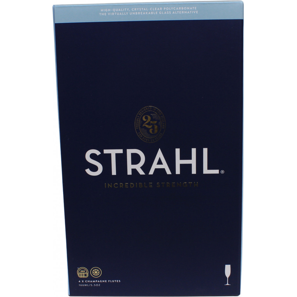 Lekre champagneglass i gaveeske produsert i uknuselige glass i polykarbonat fra Strahl, perfekt til camping eller båttur.