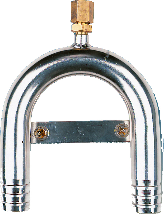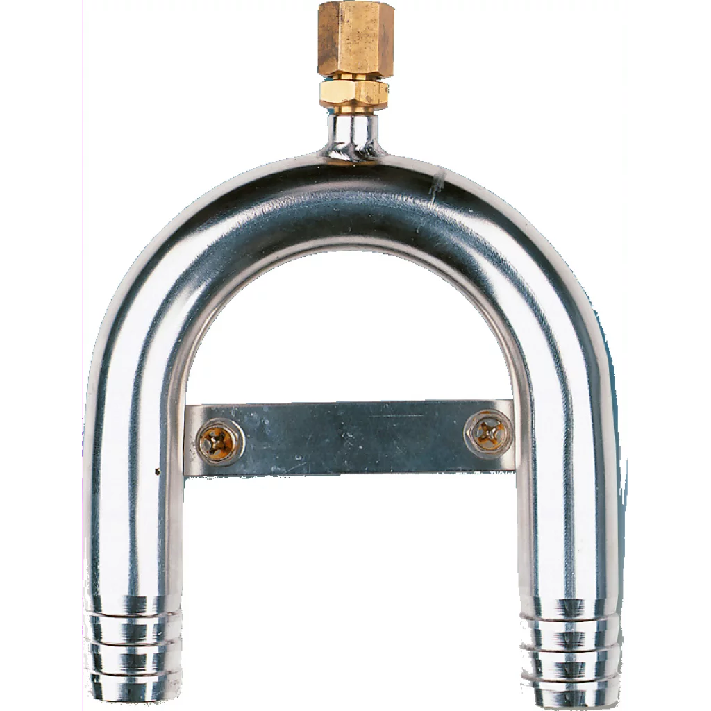 Svanehals (bend) i syrefast stål 316 til bruk ved montering av toalett. Disse beskytter mot vanninntak som skyldes hevertvirkningen. Med lufting.