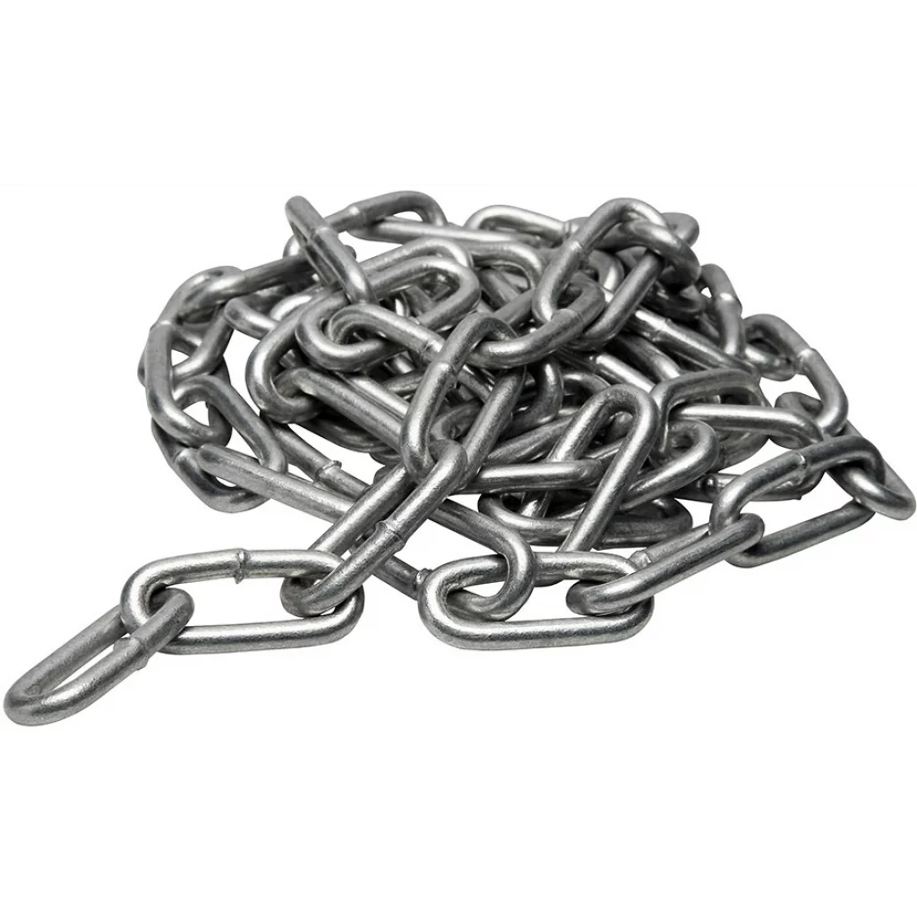 Kraftig varmgalvanisert langlenket kjetting i galvanisert stål for moring av brygger og annet tungt materiell. DIN 763.