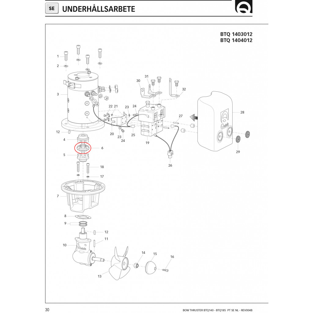 Elastisk kobling som brukes mellom girboks og motor på Quick BTQ 140 og 185 baugpropeller.