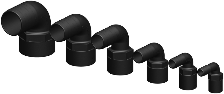 - Slangekopling 90 grader hun 1" 25mm slange kompositt