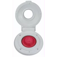 Fotbryter for ankervinsj 12/24V. Et sikkerhetslokk forhindrer utilsiktet bruk. Hus og lokk i hvit plast.