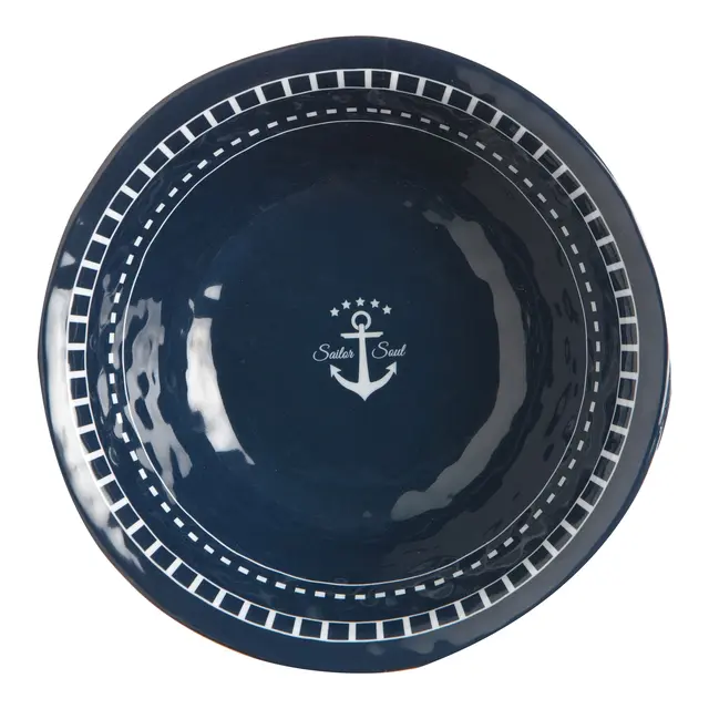 Skål Ø15 mm er en del av det uknuselige melamin-serviset Sailor Soul, som har sett med middagsplater, suppe og dessertplater laget av melamin, dekorert i nautisk stil.